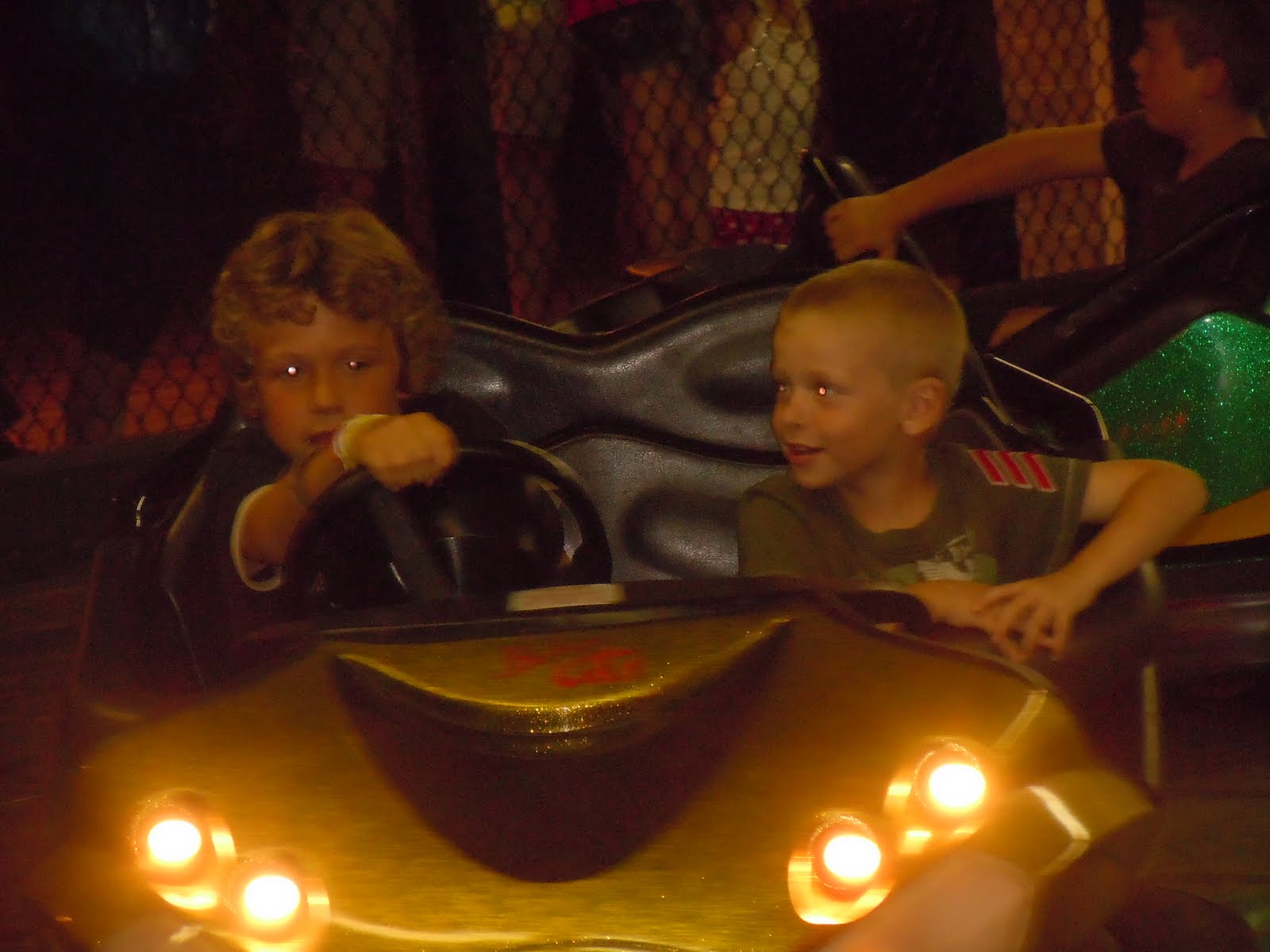 What big boys. Hazen was big enough to drive and Brant was big enough to be a passenger on the bumper cars. Pure fun and Brant just grinned and laughed the entire time. |